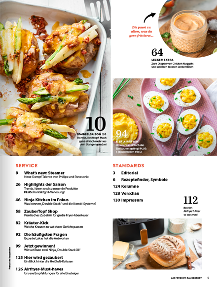 Willkommen zur Frühlingsausgabe von ZauberTopf Extra! Diese Saison feiern wir die Vielfalt der Heißluftfritteuse mit 85 aufregenden Rezepten, die nicht nur schnell und knusprig, sondern auch gesund und köstlich sind. Unser Ziel ist es, Ihnen innovative Ideen zu bieten, die Ihre Küche bereichern und das Kochen zum Vergnügen machen.
