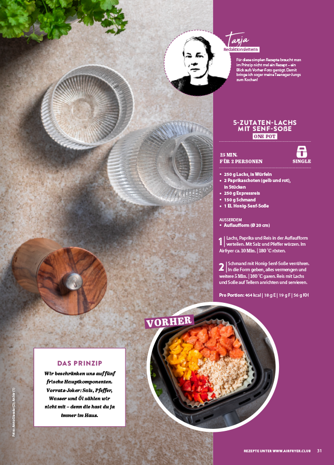 die Tage werden länger, die Sonne lässt sich öfter blicken und wir haben wieder richtig Lust auf frische Farben und leichte Küche. Passend dazu haben wir unseren Airfryer fit für die neue Saison gemacht! Freu dich auf echte Highlights. Keep it simple: Weil wir es lieben, frische, leckere Mahlzeiten aus wenigen Zutaten zuzubereiten, findest du in dieser Ausgabe wieder viele passende Ideen. Neu dabei: unsere Rubrik „Fry 5“ mit 5-Zutaten-Rezepten. Außerdem gibt’s italienische One-Pot-Pasta und genial einfache Oster-Leckereien aus oft nur 3 Zutaten. Teile deine Knusper-Erfolge: Schick uns Fotos deiner Lieblingsgerichte und mit etwas Glück landet deine Idee in einer der nächsten Ausgaben.