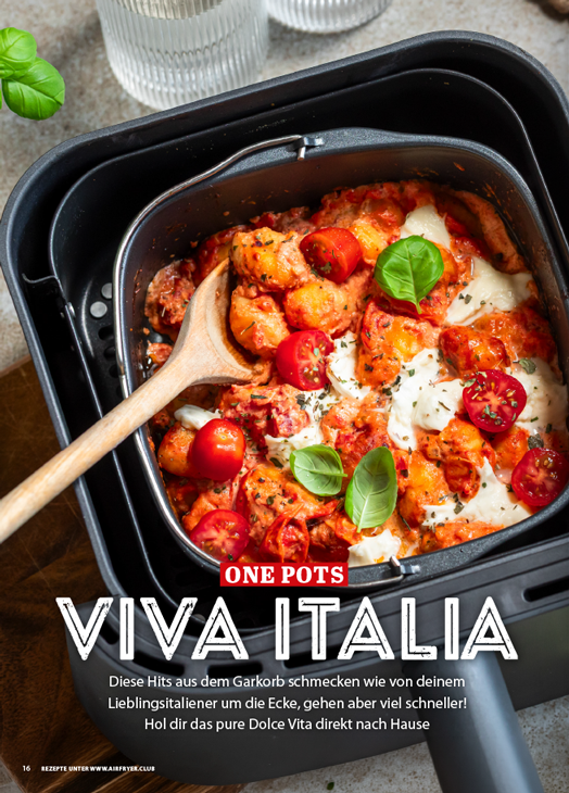 - One Pots – Viva Italia: Lerne, wie du komplette Pasta-Gerichte und mediterrane Mahlzeiten direkt im Garkorb zubereitest – für echtes Dolce-Vita-Feeling ohne Abwaschberge.