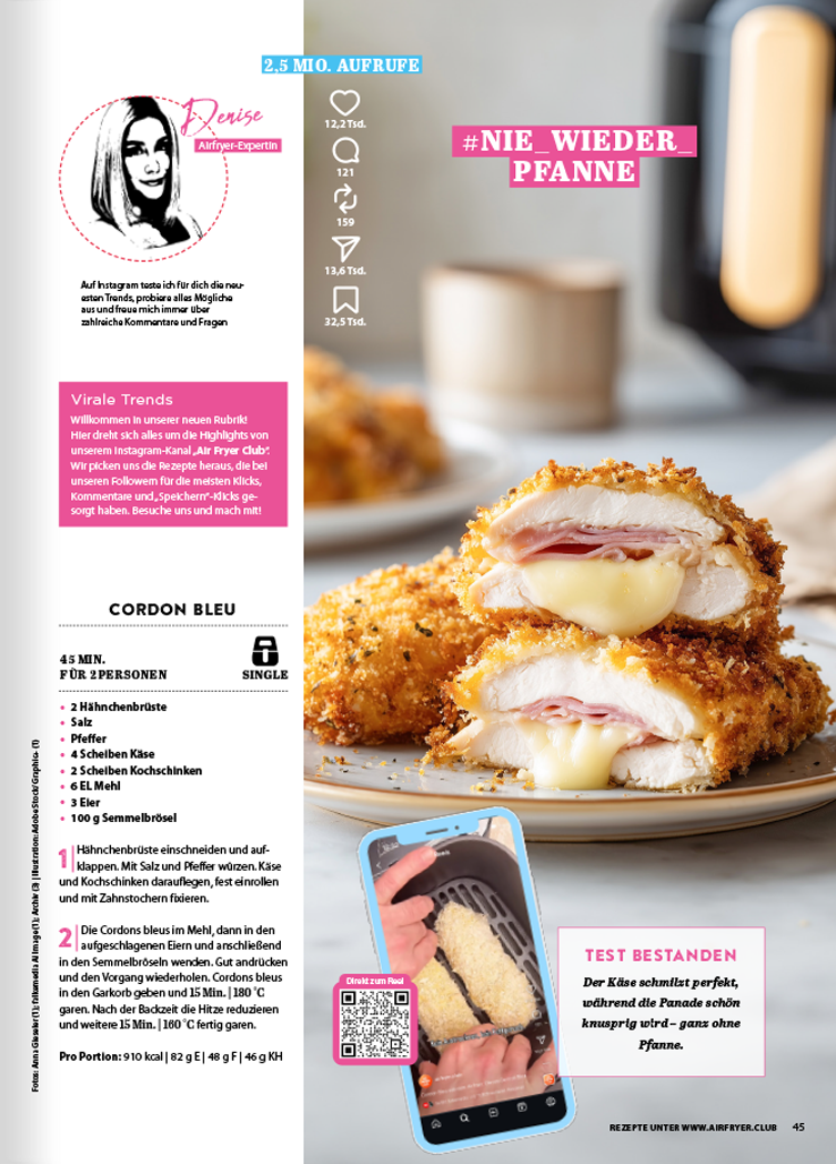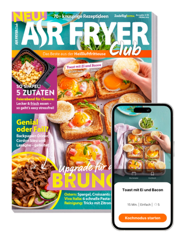Hole dir den Frühling in deine Küche! Ob saisonale Highlights mit Bärlauch und Spargel oder die neuesten Viral-Hits aus der Air Fryer Club Community – diese Ausgabe ist dein unverzichtbarer Begleiter für deine Heißluftfritteuse. Auf 116 Seiten zeigen wir dir, wie du mit wenig Aufwand maximale Knusper-Ergebnisse erzielst.