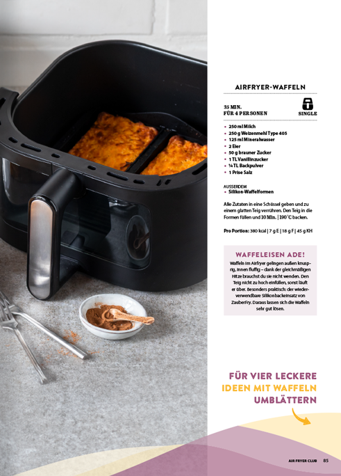 Hier kommt alles auf den Tisch, was die ganze Familie liebt. Dabei liegt der Fokus auf Zeitersparnis und Praxistauglichkeit: Neben klassischen Familiengerichten wie Schnitzel oder Aufläufen, die durch den Airfryer einen modernen Twist erhalten, liefert das Werk konkrete Lösungen für typische Alltagsprobleme.